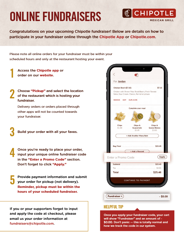 The PTO will be hosting a Dine and Donate at Chipotle (Krocks Road Location) on Tuesday, November 18th from 4:00pm-8:00pm. Please note delivery orders will not be counted towards the Dine and Donate